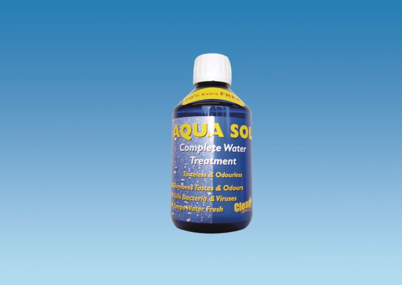 Aquasol 300ml Bottle. Complete water treatment that keeps water fresh and free from contamination. Works to eliminate: disease causing bacteria slimes, plastic producing phenols and other materials within a water system, that can create foul tastes and odours. Add 3 capsful (30ml) to every 25Lt water, soak for 12 hours Empty and rinse with fresh water.