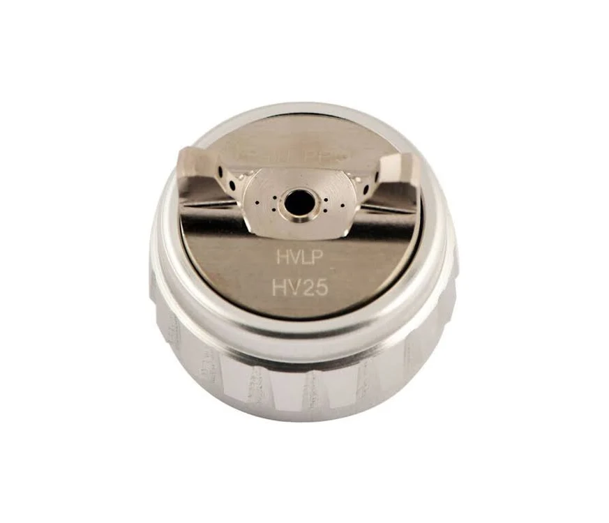 The HV25 air cap is an HVLP (High Volume Low Pressure) or “compliant atomizing” style cap intended to combine good transfer efficiency with strong atomization.