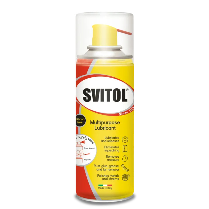 The Essential Multi-Purpose Lubricant No.1 in Italy with superior qualities to all competitors in lubricating surfaces and penetrating rusted bolts. Tests show it outperforms the leading UK brand. NEW Small and handy size of the best selling Svitol Lubricating Spray.